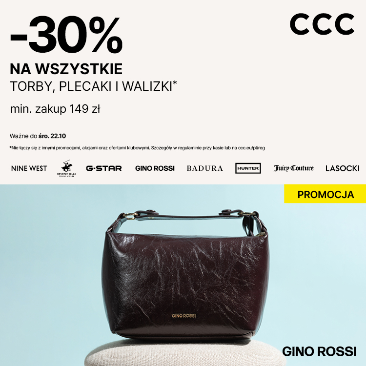 Torebka do biura, plecak na zajęcia i walizka na weekendowe wyjazdy... Z CCC pakowanie to świetna sprawa, gdy wszystkie plecaki, torby i walizki masz 30% taniej. Zrób zakupy za minimum 149 zł i skorzystaj z supercen w CCC! Szczegóły w regulaminie.