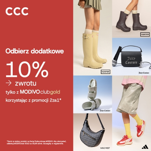 W CCC lato nabiera tempa – i to nie tylko w trendach. Dzięki MODIVOclub GOLD zyskujesz 10% cashbacku na Kartę Podarunkową MODIVO przy każdych zakupach. A jeśli skorzystasz z promocji 2za1, zyskasz dodatkowy zwrot za drugi tańszy produkt! Takie okazje sprawiają, że modowe wybory stają się jeszcze lepsze!